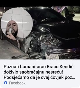 U večernjim satima prethodnog dana, društvenim mrežama i pojedinim portalima proširila se vijest da je poznati humanitarac i aktivista Braco Kendić navodno doživio tešku saobraćajnu nesreću piše jablanicalive.com.