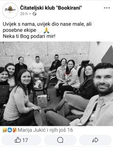 Na društvenim mrežama, članovi čitateljskog kluba Bookirani iz Žepča objavili su zajedničku fotografiju s porukom: