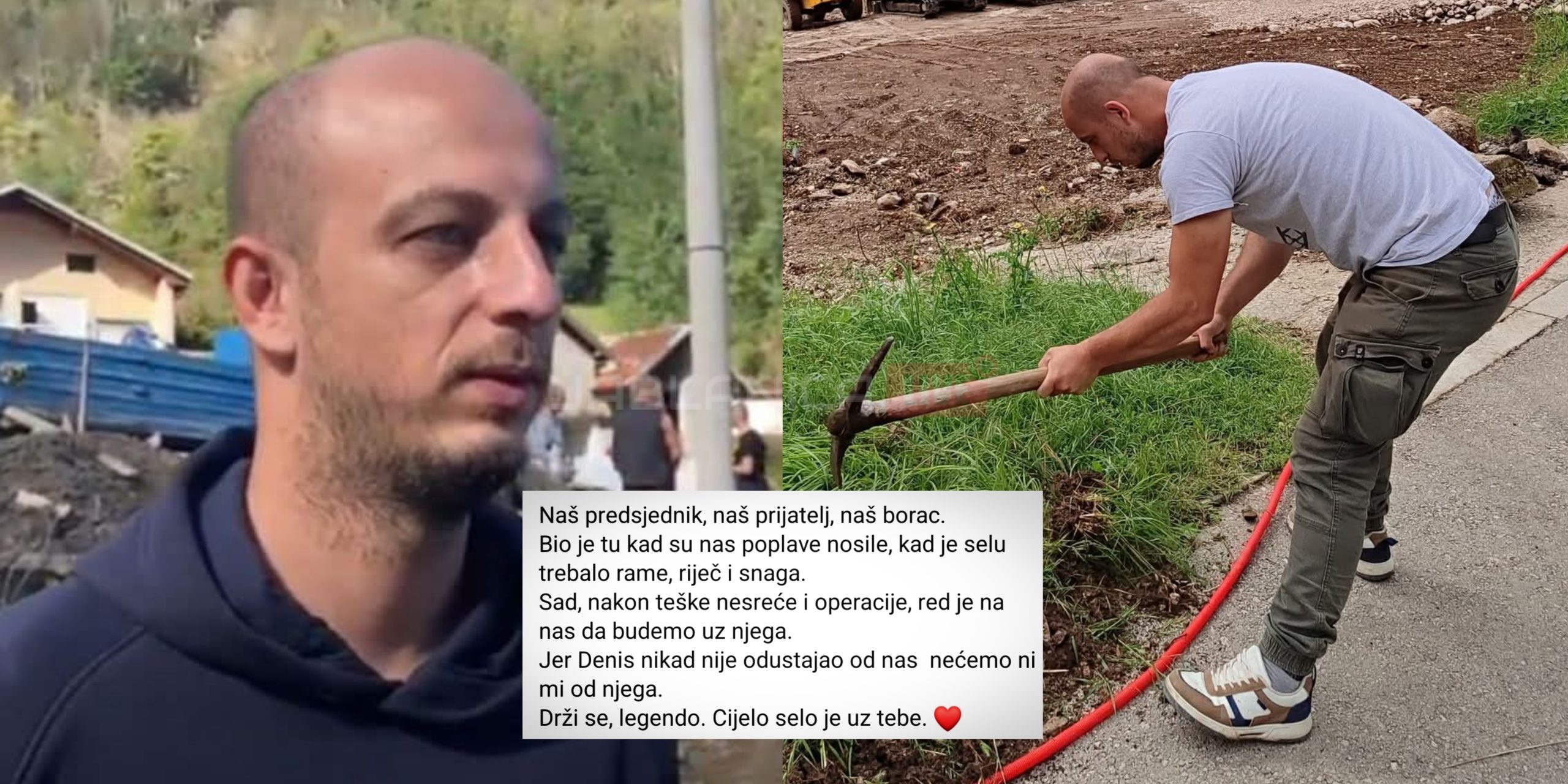 Organizacija Pomozi.ba, koja je jedina pružila konkretnu pomoć tokom prošlogodišnjih katastrofa, sada poziva sve ljude dobrog srca da upute dove za Denisovo ozdravljenje. Ali najdirljivija poruka dolazi od njegovog kolege — čovjeka koji je s njim dijelio i tu noć nesreće.