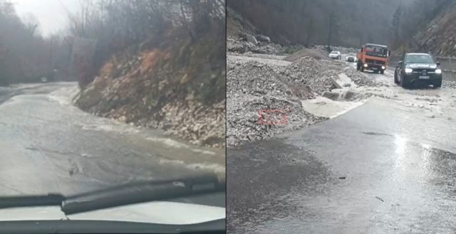 Videozapisi prikazuju ogromne gužve na ovoj dionici kao i odrone i vodu koja se slijeva niz cestu.