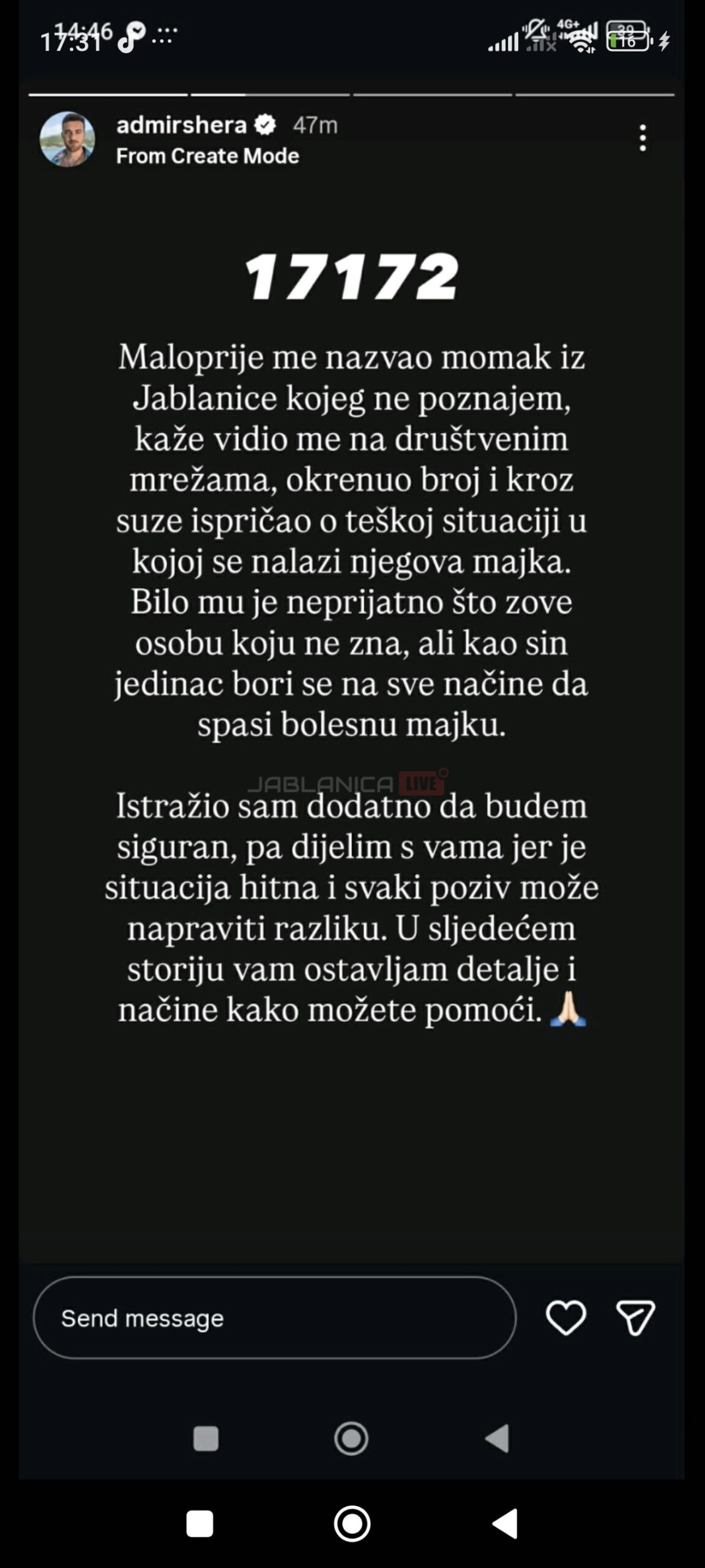 🙏 Ako ne možete donirati – podijelite apel. Vaša podjela može biti presudna.
