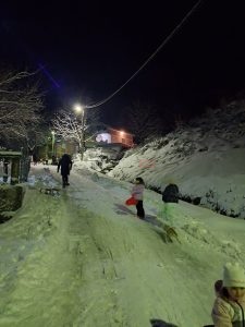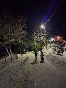 Djeca iz sela Zlate, uprkos svemu što su njihova domaćinstva prošla, danas s radošću jure niz snijegom prekrivene ulice. Sanke, kartoni, improvizovane daske — sve je u funkciji igre. Snijeg je, barem na trenutak, izbrisao tragove prošlih rana i otvorio prostor za radost.