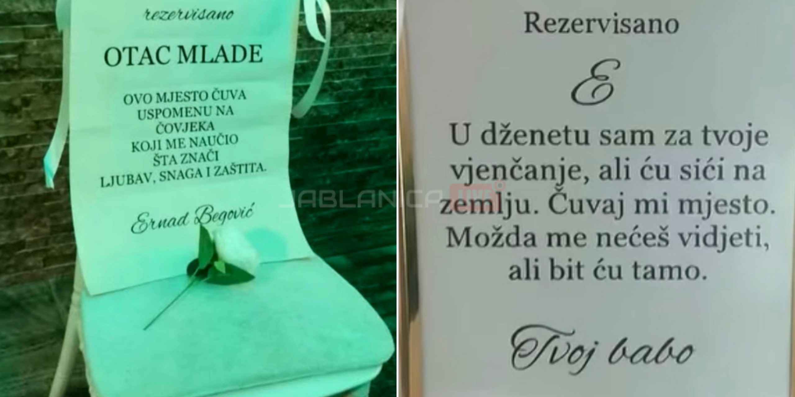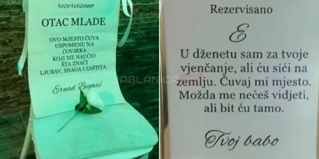 “Rezervisano – Otac mlade. Ovo mjesto čuva uspomenu na čovjeka koji me naučio šta znači ljubav, snaga i zaštita.”