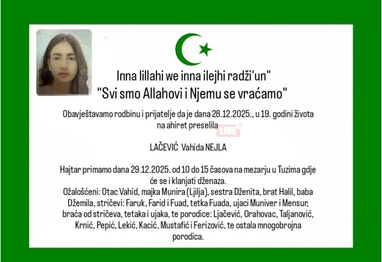 Home VIJESTI CRNA HRONIKA Još jedan život ugašen u cvijetu mladosti: Nejla Lačević (18) tragično nastradala,...