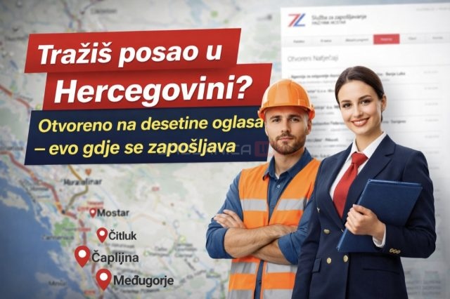 Prema podacima sa Službe za zapošljavanje HNK/HNŽ Mostar, u Hercegovini je trenutno aktivno na desetine oglasa za posao, a najveći broj prilika otvoren je u Mostaru i okolnim općinama poput Čitluka, Čapljine, Međugorja i Ravnog.