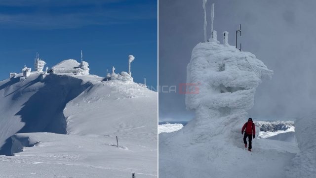 Fotografije s vrha prikazuju gotovo potpuno zaleđene antene, stupove i objekte postaje, prekrivene debelim slojevima snijega i leda. Pojedine konstrukcije oblikovane su snažnim vjetrom u impresivne snježne formacije, što jasno pokazuje koliko su uvjeti na toj nadmorskoj visini ekstremni.