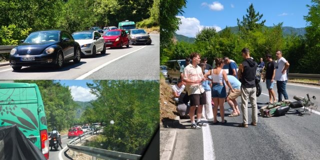 Na magistralnom putu M17, između restorana Zdrava Voda i Lovački Dom, danas je došlo do saobraćajne nesreće u kojoj je učestvovao motociklista. Prema nezvaničnim informacijama, vozač motocikla je izgubio kontrolu nad vozilom i pao, a uzrok nesreće najvjerovatnije je klizav kolovoz usljed prosipanja ulja.