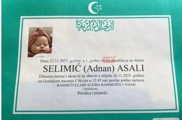 Zenica je danas obavijena tugom nakon vijesti koja je potresla cijeli grad – u prvoj godini života preminula je beba Asali Selimić, piše 072info.