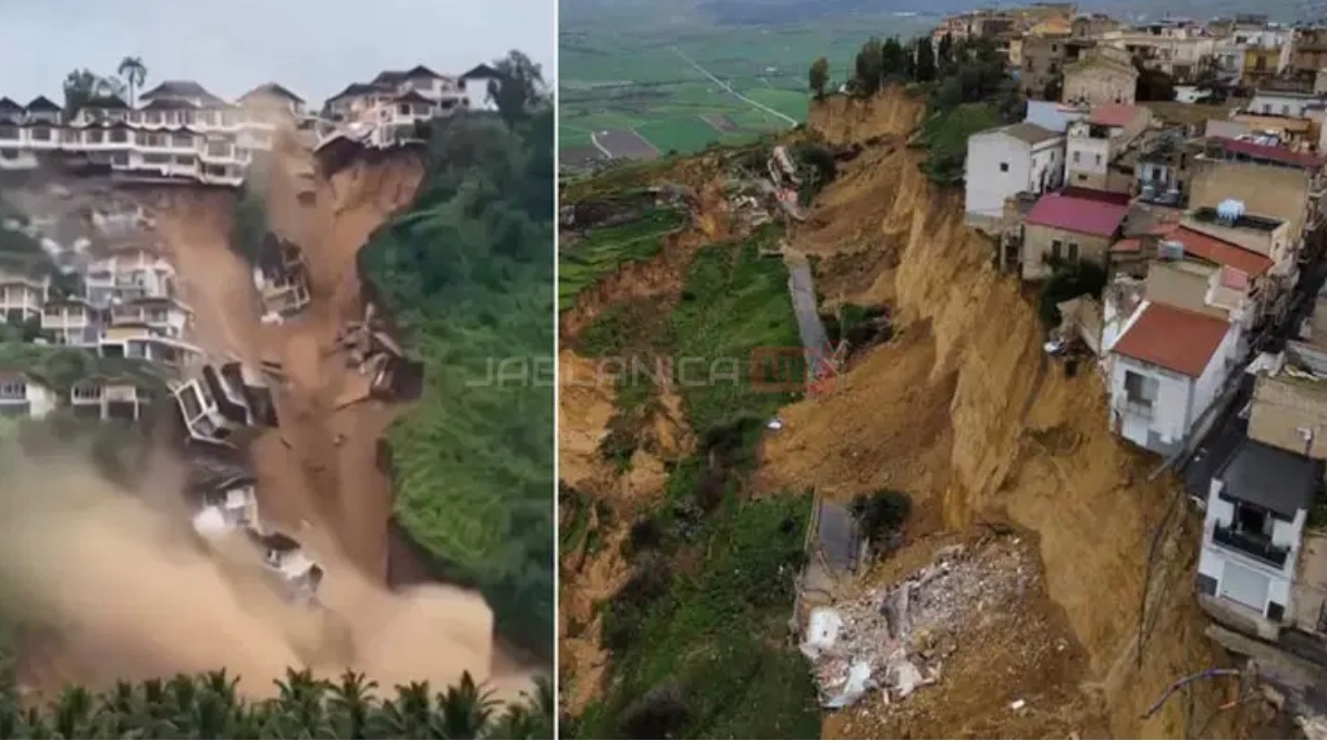 Klizište je doslovno “pojelo” dio brda na kojem se nalazi stambeni dio grada. Na snimcima iz zraka vide se kuće koje sada vise nad provalijom, dok su duboke pukotine presjekle puteve i poljoprivredna zemljišta. Lokalni zvaničnici opisuju situaciju kao “alarmantnu” i upozoravaju da postoji rizik od daljih urušavanja.