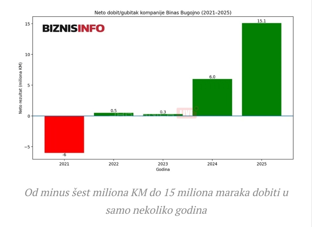 Ako se vratimo na 2021. godinu, Binas je tada poslovao s gubitkom od oko 6 miliona KM, što dodatno govori o velikoj transformaciji kompanije.